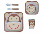 Bamboe kinderservies set 5 delig – Kinderbord – Magnetron bestendig - Eetset – Baby drinkbeker - BPA vrij – Aap